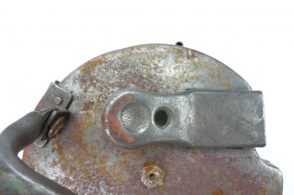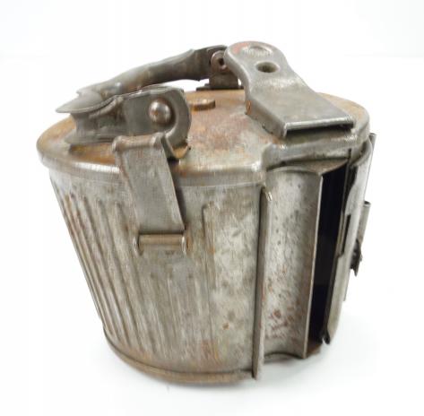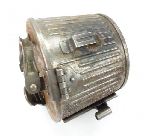 MG34/42 Ammo Drum Paint stript used MG34/42 ammo drum for 50 rounds of Cal. 8x57 in metal belt. Maker code marked “HQU” and dated “1943” in used but good condition.