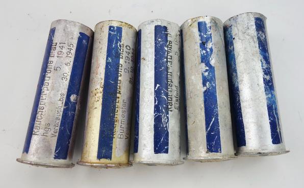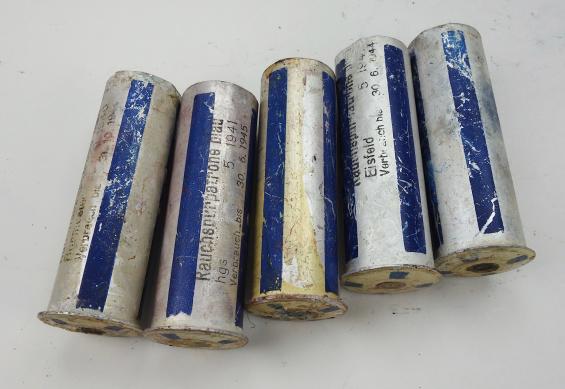 5 Wehrmacht empty Flare Shells (Blue) Nice used 5 Wehrmacht empty Flare Shells (Blue) “1941” dated nice for display! In used but good condition.
