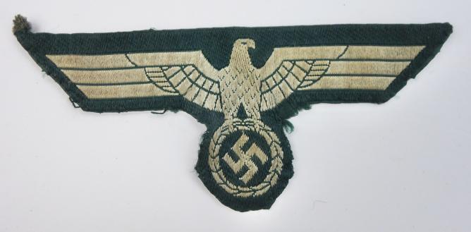 Wehrmacht M36 Bevo Breast Eagle Nice used uniform removed Wehrmacht M36 “Bevo Wuppertal” breast eagle in used but good condition.