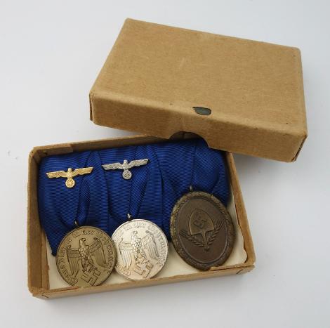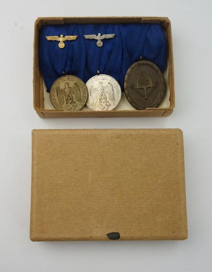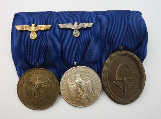 “RAD 4 years Loyal Service Medal, Wehrmacht 4 years Loyal Service Medal and Wehrmacht 12 years Loyal Service Medal” all in very good condition.