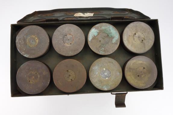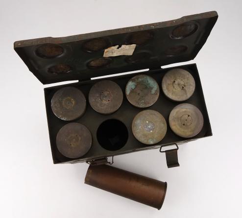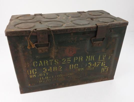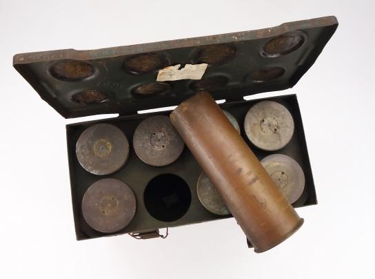 British WW2 steel 25 Ponder Shell Box with 8 Shells