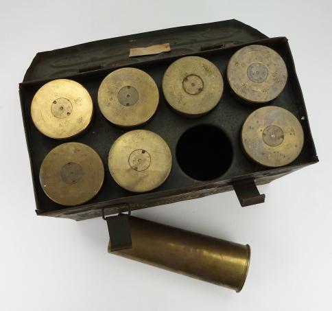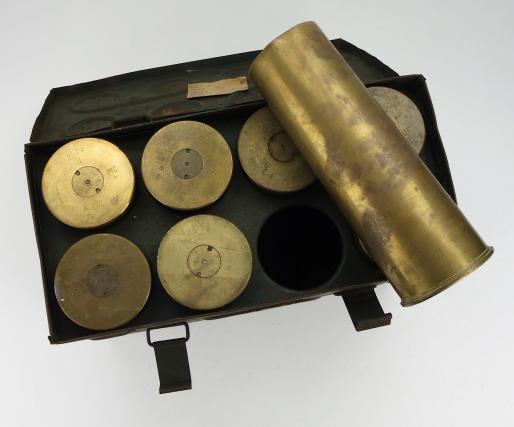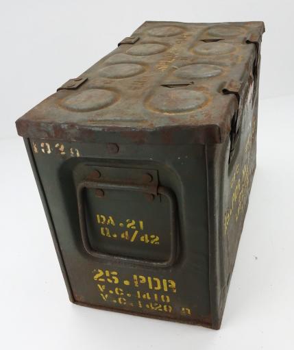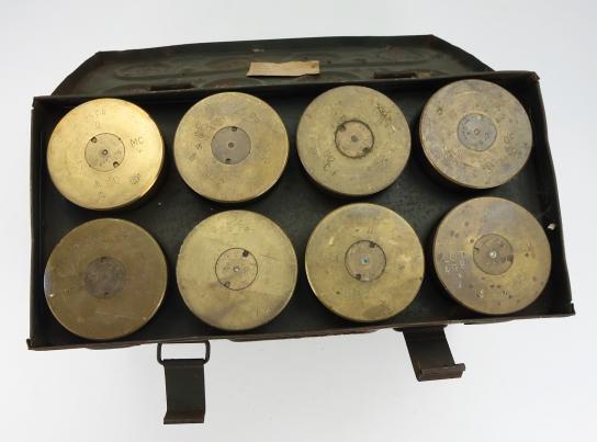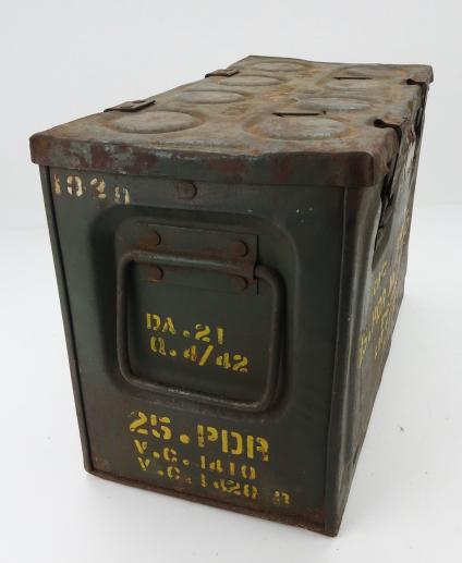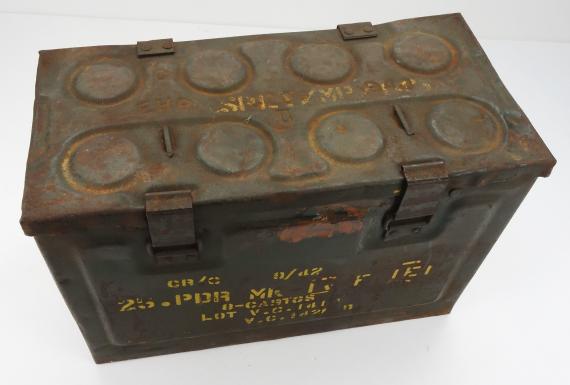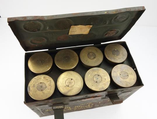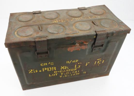 British WW2 steel 25 Ponder Shell Box with 8 Shells