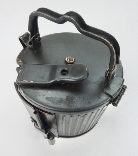 MG34/42 Ammo Drum Very nice near mint MG34/42 ammo drum for 50 rounds of Cal. 8x57 in metal belt. Maker code marked “HQU” and dated “1943” in 90% of its original camo paint and in very good condition.