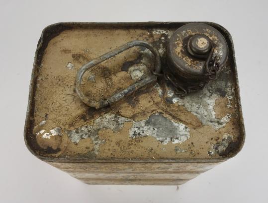 Wehrmacht 5 liter Oil Can Nice used Wehrmacht 10 liter oil can In 85% of its original tropical camo paint and original text. Overal a very nice oil can in used but very good condition.