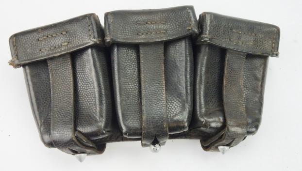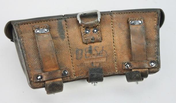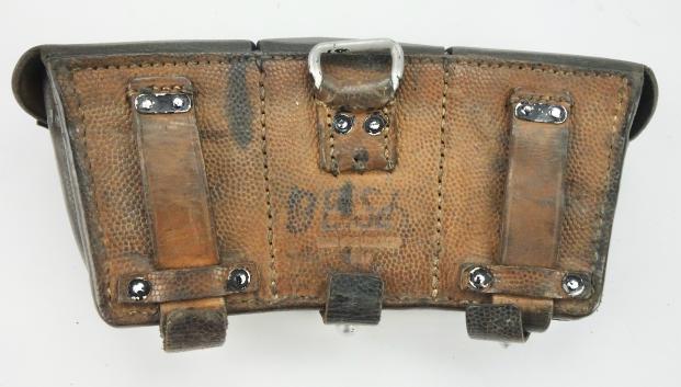 K98 Ammo Pouch Nice used early K98 ammo pouch maker marked "Carl Ackva, Lederfabrik, Bad Kreutznach" and dated "1937" In used but very good condition.