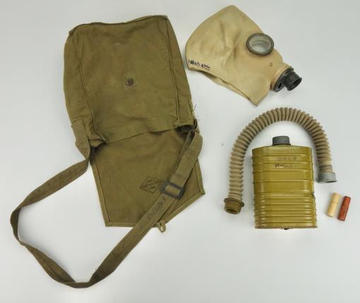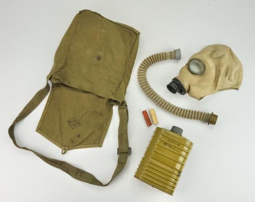 Soviet WW2 Gasmask Very nice and rare to find WW2 Soviet gasmask in its original cloth gasmask bag, Mask and bag both wartime dated. In used but very good condition, Hard to find!!!