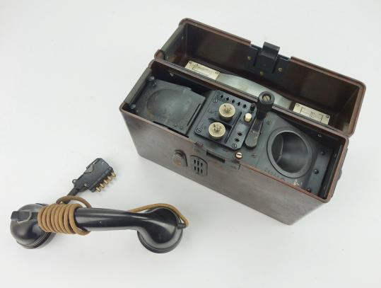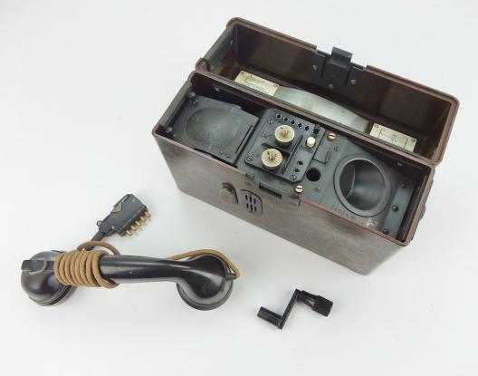 Wehrmacht Fieldphone "Fernsprecher FF33" Very nice bakelite fieldpfone, very nicely dated “1940” With telephone receiver and pendulum. In very good condition.