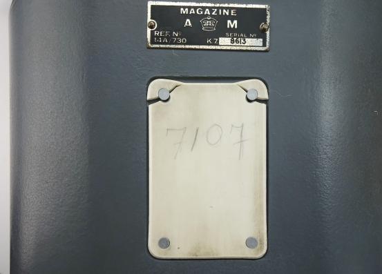 The outline design of the F24 camera was carried out by the Royal Aircraft Establishment at Farnborough, and it was introduced in 1925. Detailed design, and most production, was by Williamson Manufacturing Company Ltd of Willesden Green, London NW.10. The F24 was designed to be lighter and smaller than the F8 camera of 1919, but the F8 continued to be used in less demanding installations. The main component units of the F24 are a body with roller blind focal plane shutter, gearbox, film magazine, and lens cone. Image film format is 5"×5", on 5" wide roll film, with magazine capacity up to 250 exposures (the F8 offered images up to 8"×7.5" on 9" wide film). Shutter speed is preset between 1/100s and 1/1000s.