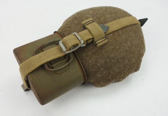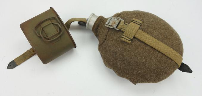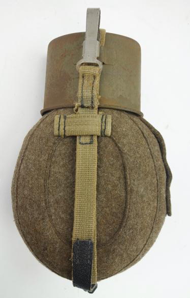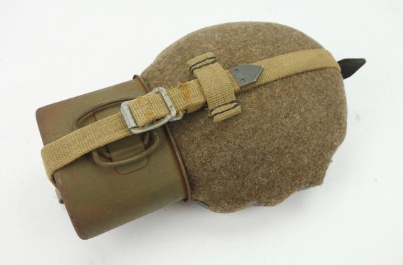 Wehrmacht M31 Canteen with Tropical Strap Nice used Wehrmacht canteen with tropical strap. Complete with metal cup. Nice used canteen in very good condition.
