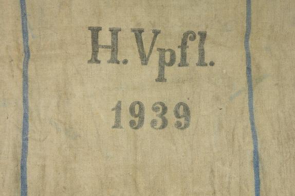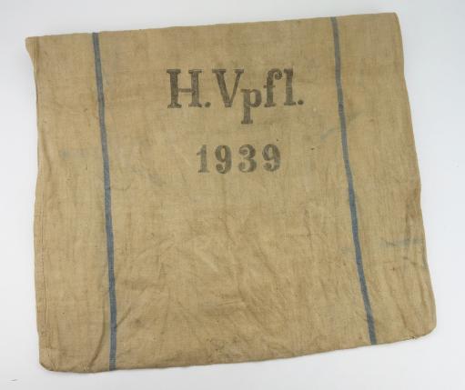 Wehrmacht Supply Bag “Heeres Verplegungs Sack” marked “H.Vpfl.” And dated “1939” these big bags were used for the German Army’s food supply’s. Nice bag with big German eagle stamp in used but good condition.
