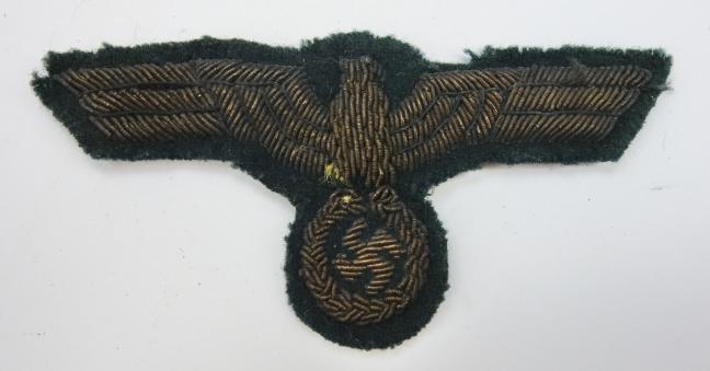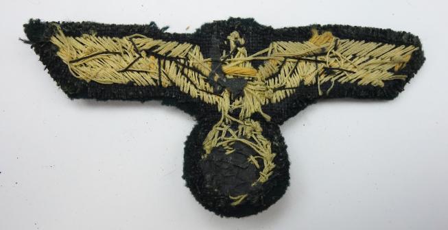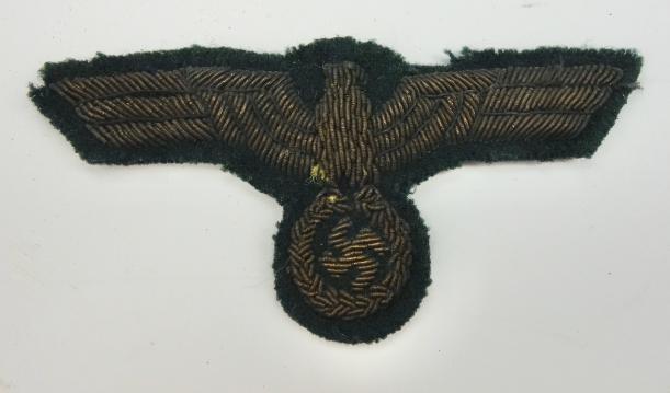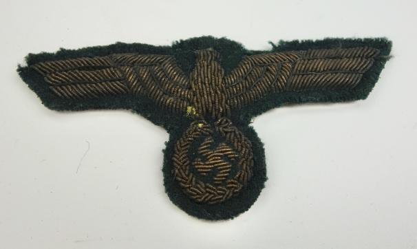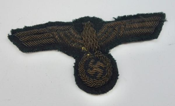 Wehrmacht Embroidered Officers Breast Eagle Nice used salty Wehrmacht Embroidered Officers breast eagle in used but good condition.