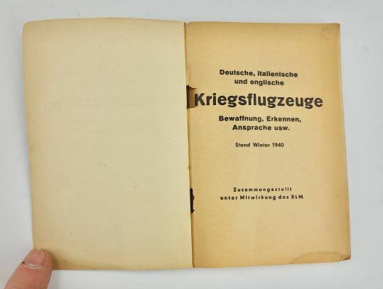 Reichs Luftschutz Bund RLB Aircraft Recognition Booklet. To recognize German, Italian, British, American and Russian Aircraft.