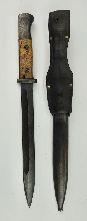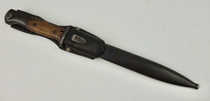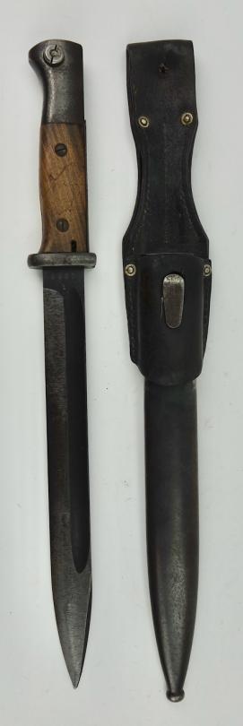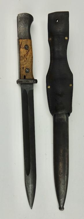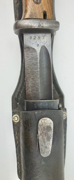 K98 Bajonet with leather Frog Very nice non matching K98 Bajonet with leather Frog Maker code marked “COF” and dated “1944” Overal a very nice bajonet in used but very good condition.