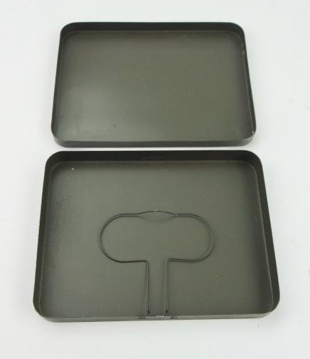 Wehrmacht case for Klarscheiben fur Gasschutshaube Very nice metal can in its original camo paint and text “10 Klarscheiben für Gasschutzhaube” In very good condition.