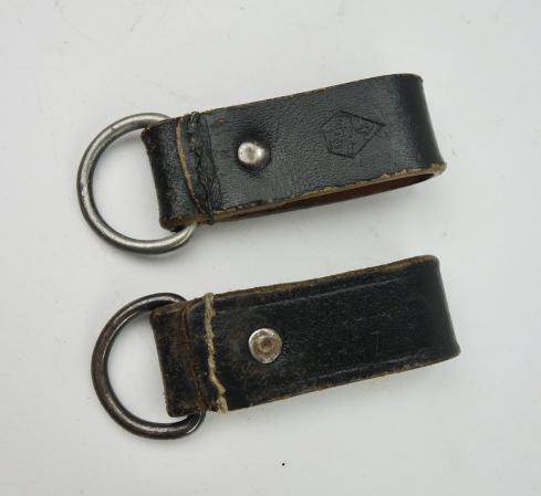 Wehrmacht Equipment D Rings Both nicely marked Wehrmacht Equipment D Rings Used to connect equipment to the combat belt. In very good condition.