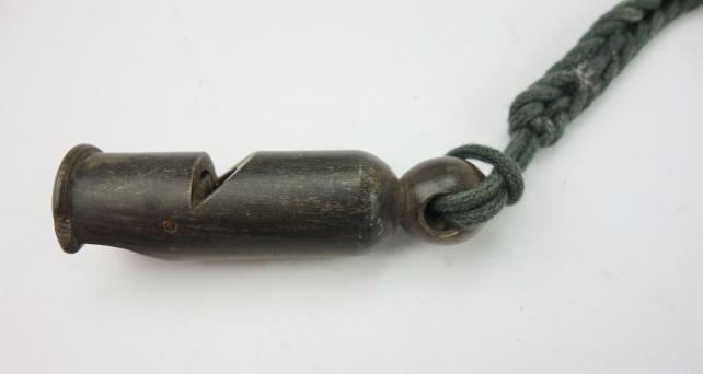 Wehrmacht NCO/Officers Whistle and Lineyard Very nice wooden made Wehrmacht NCO/Officers Whistle and Lineyard “Driller Pfeifen” In used but very good condition.
