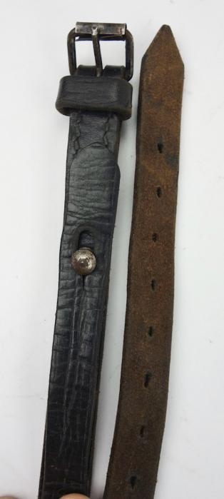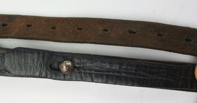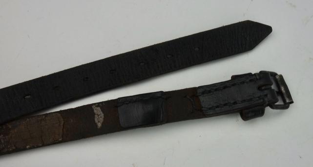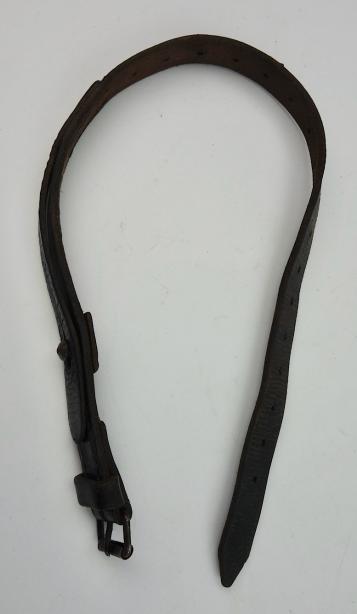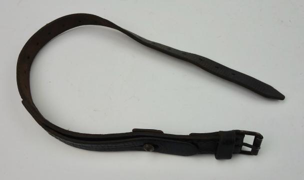 Wehrmacht Equipment Strap Nice black leather Wehrmacht equipment strap. Nice used un-marked strap in very good condition.