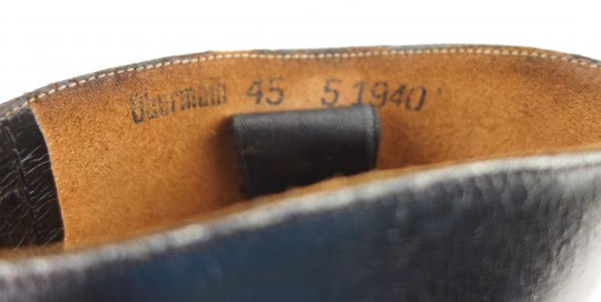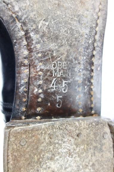 Wehrmacht Officers Boots Fantastic text book Wehrmacht officers boots with there original leather sole and horse shoe Maker marked “Obermain” size marked and dated “1940”. On used but very good condition.