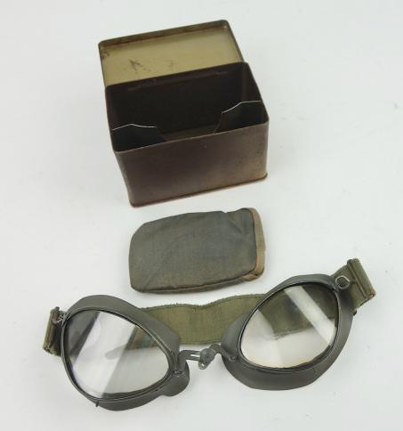 Wehrmacht Motorcycle Dust Goggles Nice Wehrmacht Motorcycle Dust Goggles in nice metal case. Goggles maker marked “GS” and dated “1941” in used but very good condition.