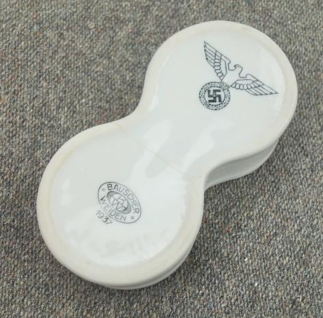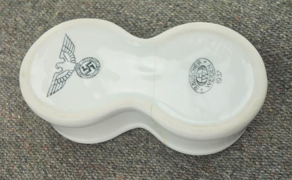 Very nice Wehrmacht porcelain “Salt & Pepper” messhall set. Nicely marked with the Wehrmacht eagle
