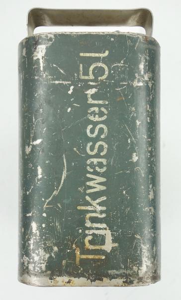 Luftwaffe Aircraft 5 Liter Water Jerrycan Very nice steel made Luftwaffe Aircraft 5 Liter Water Jerrycan in original paint and with original text “Wasser 5 Liter” in very good condition.
