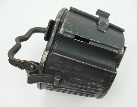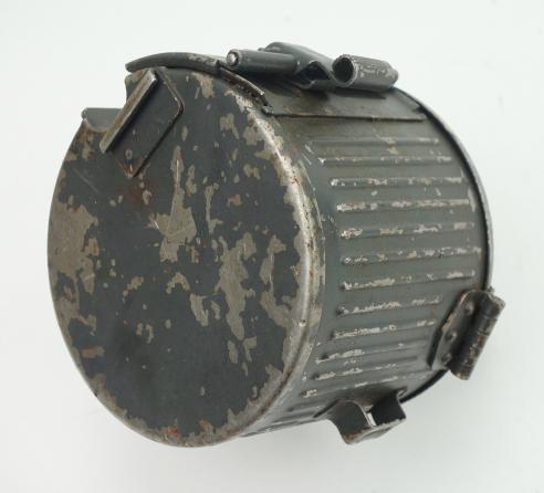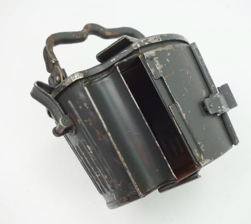 MG34/42 Ammo Drum Very nice near mint MG34/42 ammo drum for 50 rounds of Cal. 8x57 in metal belt. Maker code marked “HQU” and dated “1943” in 90% of its original camo paint and in very good condition.
