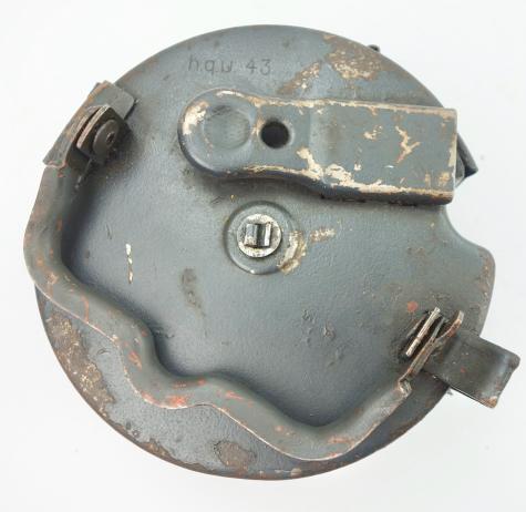 MG34/42 Ammo Drum Very nice near mint MG34/42 ammo drum for 50 rounds of Cal. 8x57 in metal belt. Maker code marked “HQU” and dated “1943” in 90% of its original camo paint and in very good condition.