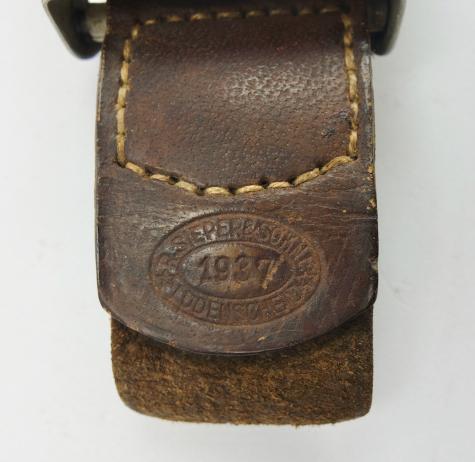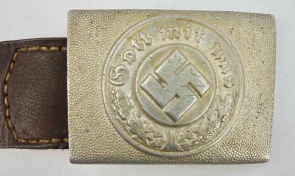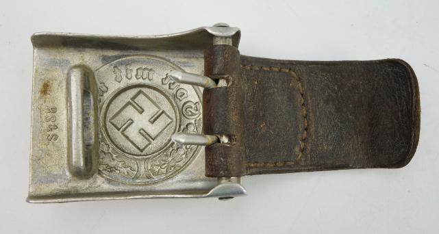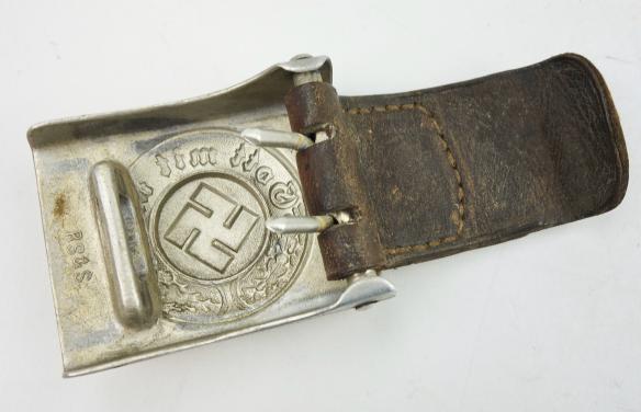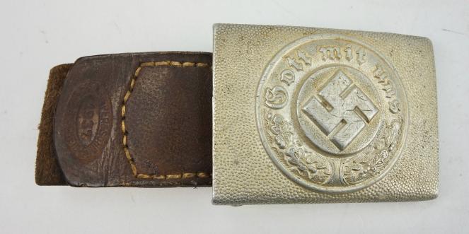 Very nice used aluminium Polizei Belt Buckle with leather tab. The buckle is nicely maker marked “R.S.&S.” witch is “Richard Sieper & Sohne”