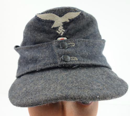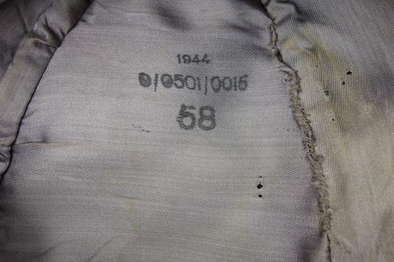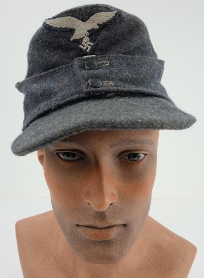 Luftwaffe Einheitsmutze M43 Cap Very nice used Luftwaffe Einheitsmutze M43 Cap In good size “58” and “RBN” number marked. “1944” dated and with its original sewed insignia. In used but very good condition.