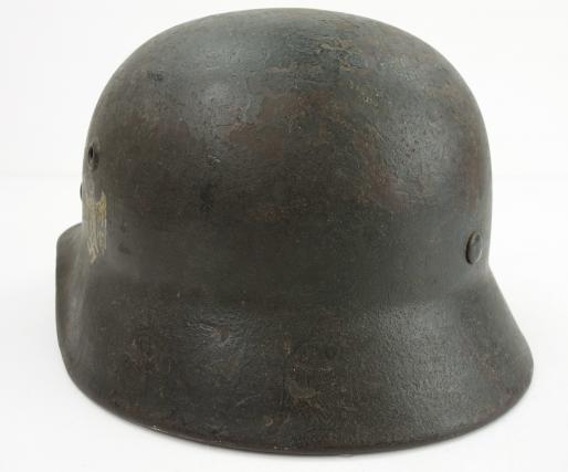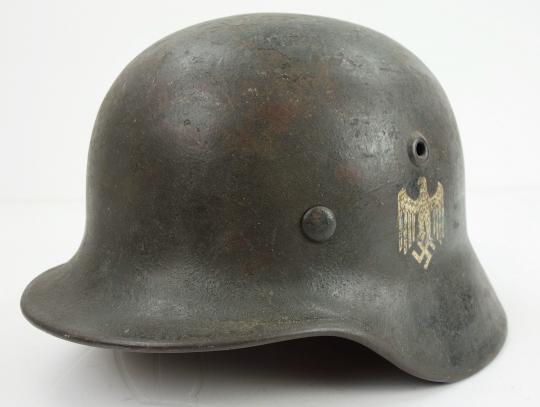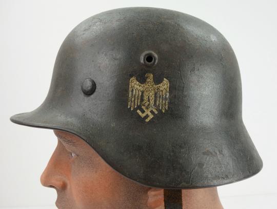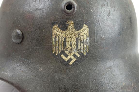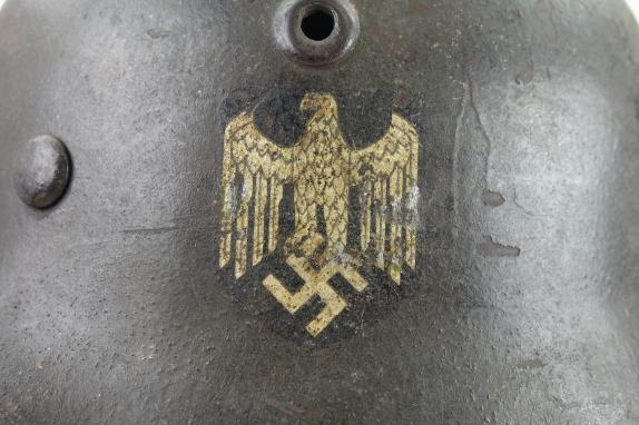 The Wehrmacht decal is 95%. Overal a very nice used Wehrmacht M40 SD helmet in very good condition.