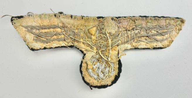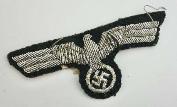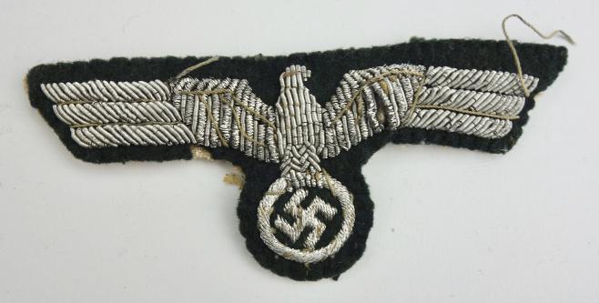 Wehrmacht Embroidered Officers Breast Eagle Nice used salty Wehrmacht Embroidered Officers breast eagle in used but good condition.