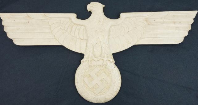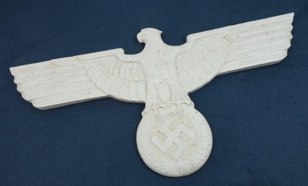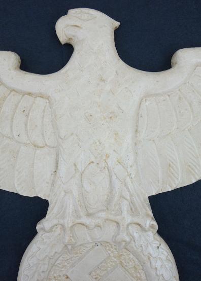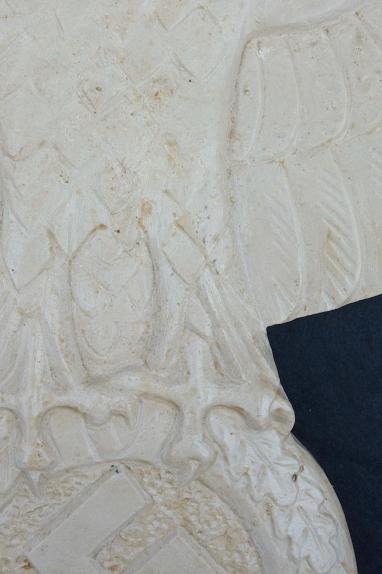 Big marble wall Eagle Nicely marble carved big wall eagle Wing tip to wing tip size “69” cm and top to bottom size “35” cm (privatly found in “Celle, Germany) Overal a very nice big wall eagle in great condition.