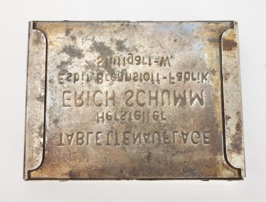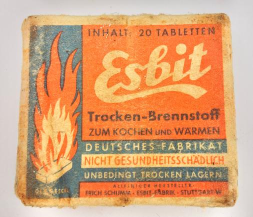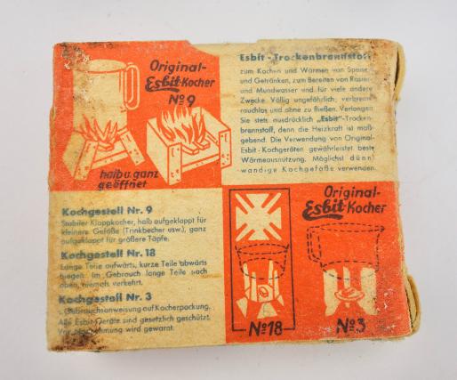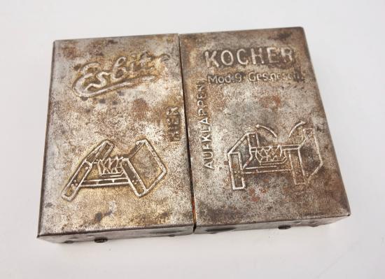 Wehrmacht Esbit Cooker with original Fuel Blok Original WW2 Esbit cooker with its original fuel blok For cooking in the field or hearing coffee. In used but good condition.