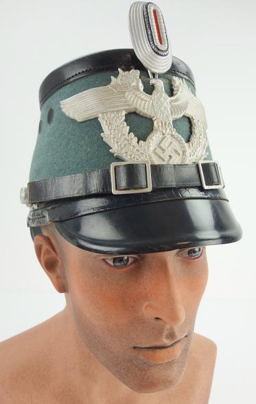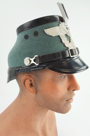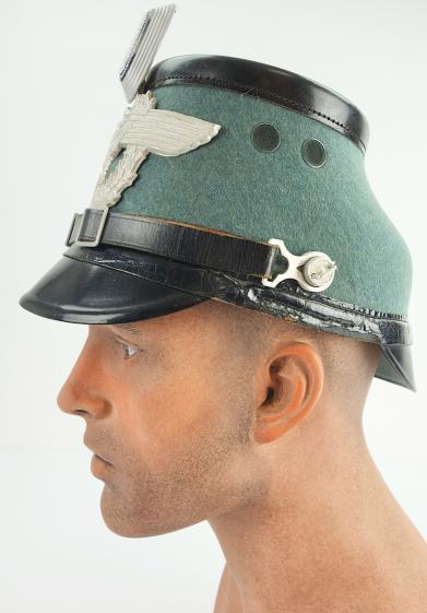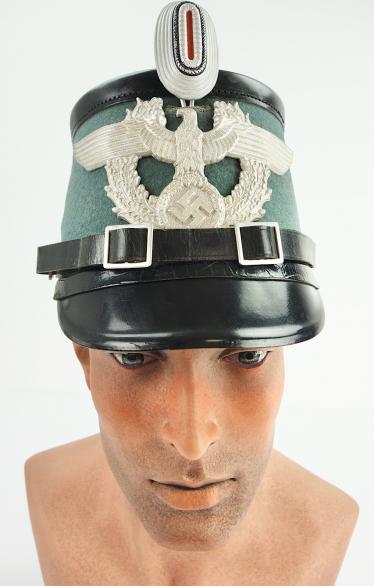 Made by “Hans Römer, Neu-Ulm (Donau)” nicely marked “Echt Fiber-Tschako” great for a headgear and helmet collection, or to complete a mannequin.