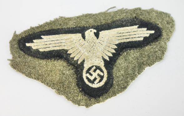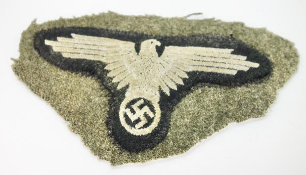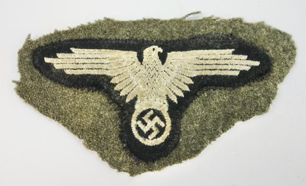 WaffenSS cutout sleeve Eagle Very nice wool woven WaffenSS sleeve eagle Uniform cutout. In used but very good condition. Used on wool tunics, greatcoats and even M44 DOT camo suits.