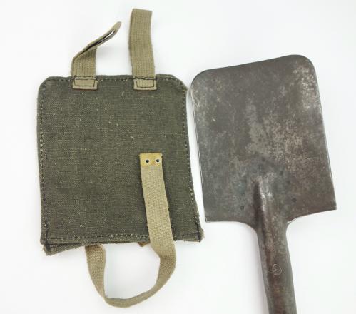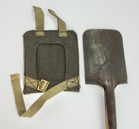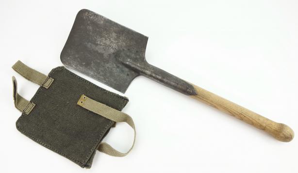 Wehrmacht M31 Trench Tool (shovel) in 1945 Cover Nice “GCO” maker code marked shovel In a 1945 cover, canvas made and with war booty metal parts. In very good condition!