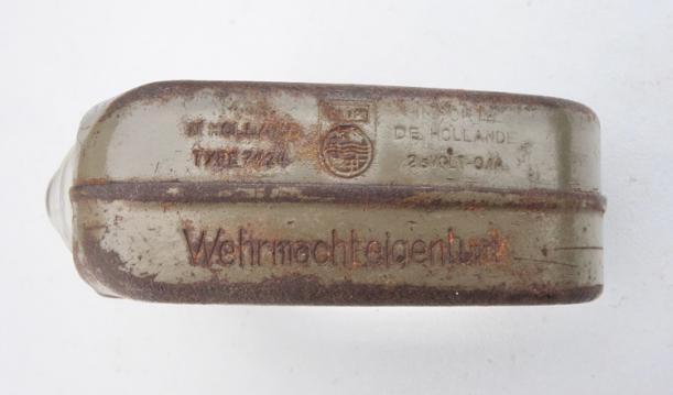 These flashlight where made in concentration camp "Herzogenbush" Also known as "Kamp Vught" they where made there for a period of two years by the prisoners of the concentration camp these workers where called the "Philips Commando" and where used by the German army as wel as the Allied forces and by civilians. This one is specially made for the Wehrmacht, nicely Wehrmacht marked.