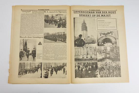 Dutch NSB Newspaper De Zwarte Soldaat Edition about the new NSB headquarters in "Groningen" Dated "1941" in very good condition.