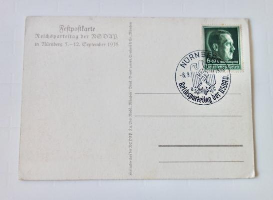 Third Reich Postcard Nice early Third Reich postcard. “Reichspartijtag Nürnberg 1938” Never being used in very good condition.