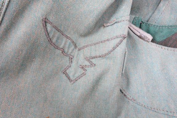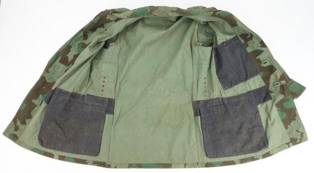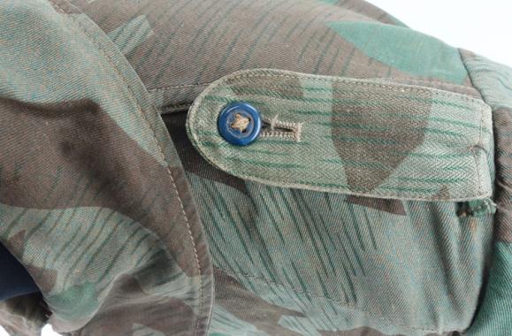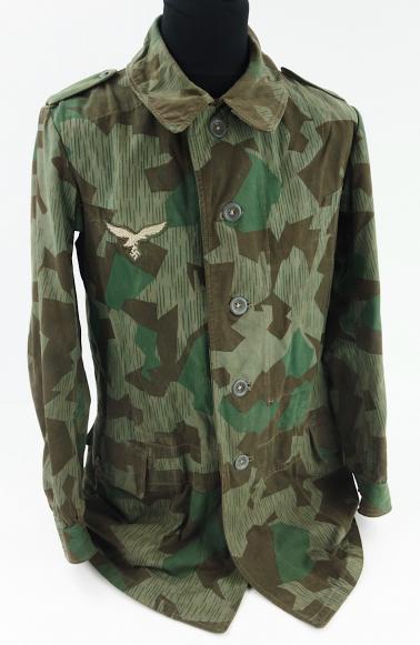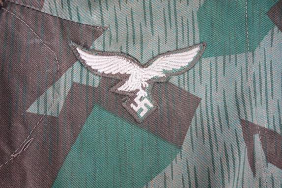 Very nice and rare early Luftwaffe Field Division Smock with was used at the time, on the cover of the book (Guns of the Reich) with original sewing camo Luftwaffe breast eagle and with extreem rare HBT splitter camo shoulder boards. Nice early cotton made Luftwaffe Field Division smock, from very early cloth which was also used for the first type Splitter Fallschirmjäger smocks.