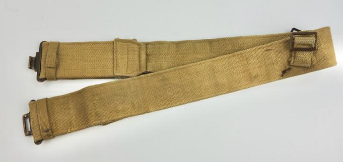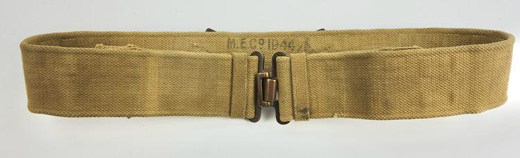 British WW2 Webbing Combat Belt Very nice British WW2 webbing combat belt Made by “MeCo” and dated “1944” Very nice British WW2 webbing combat belt. In very good condition.