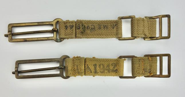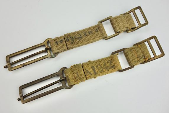 British WW2 Shoulder Strap Extension/Attachment Hooks "1942" and "1944" dated British WW2 shoulder strap extension/attachment Hooks In used but very good condition.