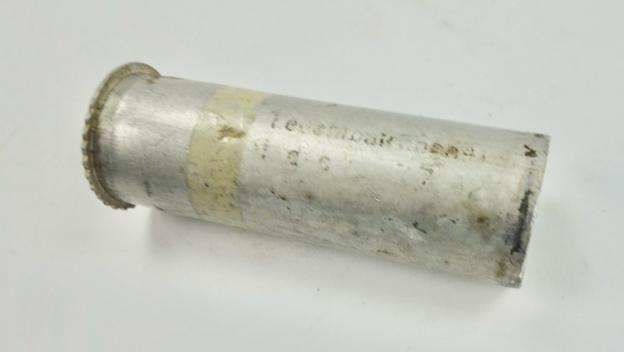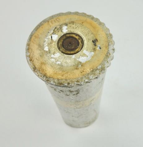 Wehrmacht Flare Gun Shell (empty) Nice used empty Wehrmacht flare gun shell. With a white ring (white star) Marked and dated but hard read. Nice for display!