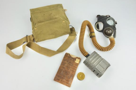 With a very nice gasmask bag, cleaning cloth in can, anti gas googles. All in very good condition.