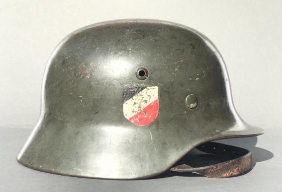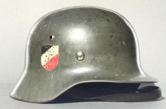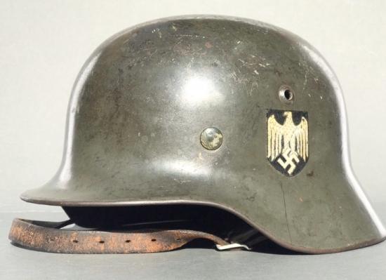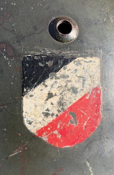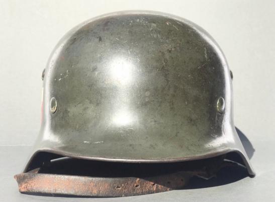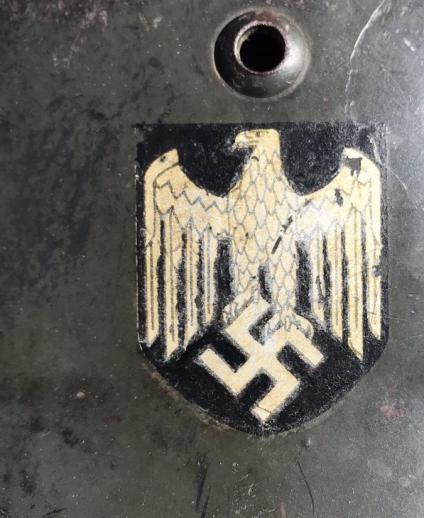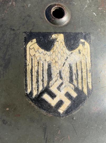 Very nice used Wehrmacht M35 DD helmet with maker code "E.F.” which is “Emaillerwerk AG, Fulda”