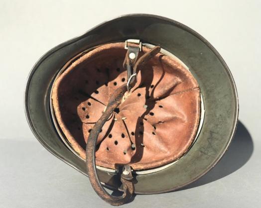 The liner size is "55” and second type of the M35 model liner, with re-enforced aluminium liner ring the helmet must be dated 1937/38 becauce of a darker olive green camo paint then the early version M35