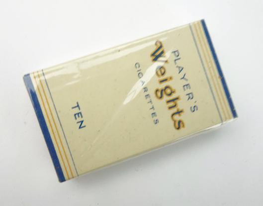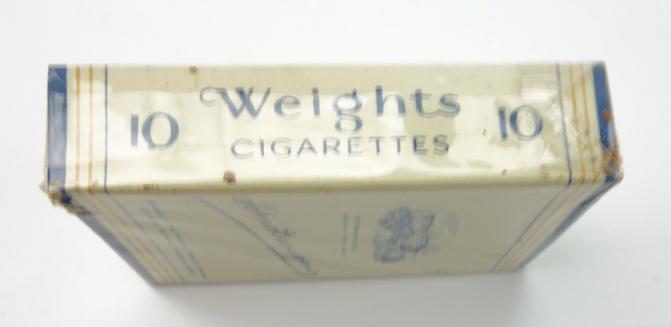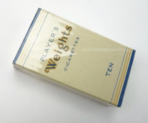 Near mint British WW2 “Players Weights” cigarettes package with content. (10 cigarettes) Manufactured by “John Player & Sons, England” perfect package impossible to upgrade!