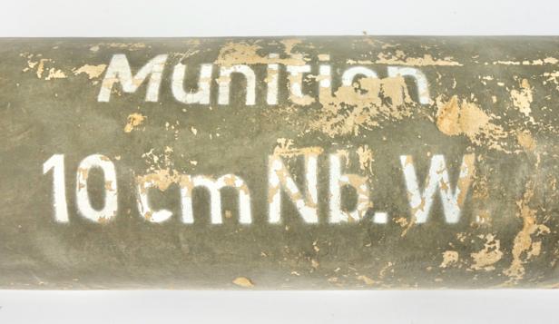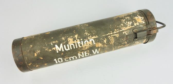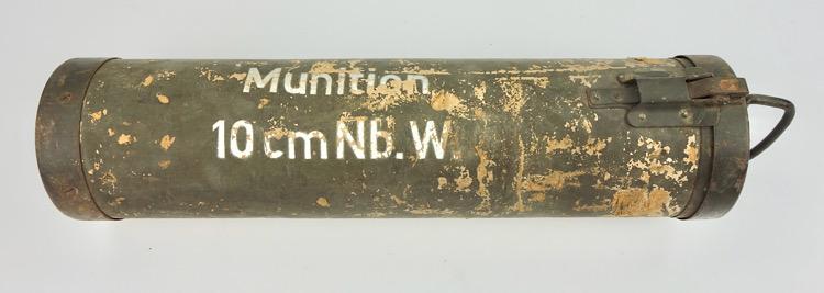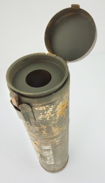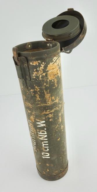 Transport Container 10 cm Nebel Werfer Nice used transport container for a smoke grenade. “10 cm Nebel Werfer” in its original paint and text. In used but very good condition.