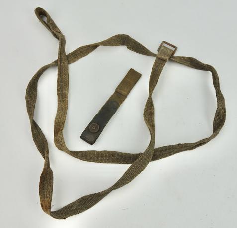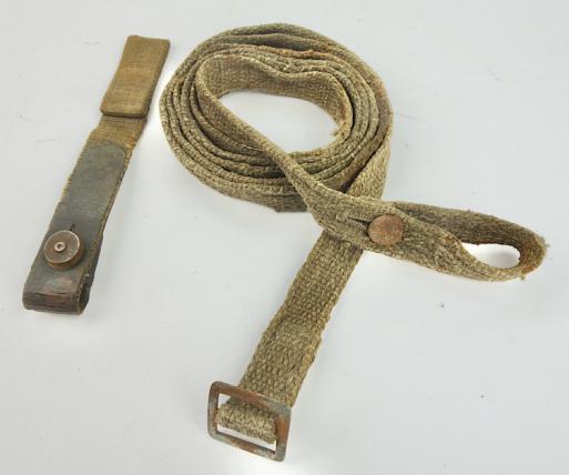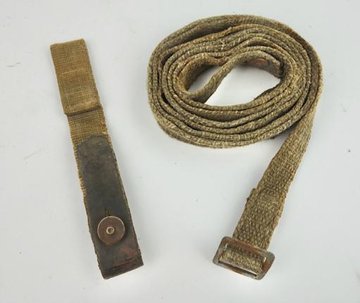 Nice used set of Wehrmacht M31 Gasmask Cannister Straps. The short one missing the belt hook, both straps have the buttons. Nice to complete a nice used Wehrmacht M31 gasmask cannister.