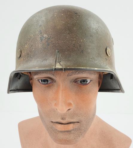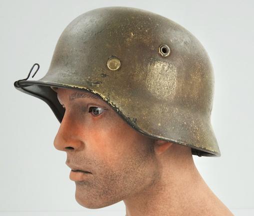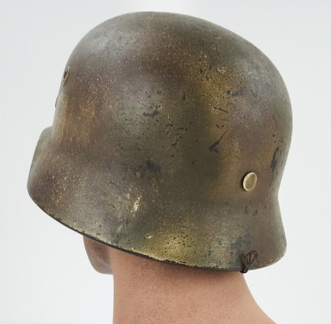 The helmet has its original liner in size “56” its clearly visible there is a Wehrmacht decal under the camo paint. Overal a great camo M40 helmet in very good condition.
